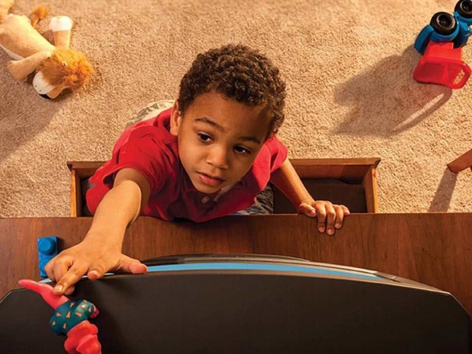 - Elimina los objetos que podrían tentar a los niños a trepar, como juguetes y controles remotos, de la parte superior de los televisores y muebles.
