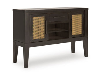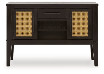 • El aparador Galliden aporta un toque rústico al diseño urbano contemporáneo. Es una interpretación moderna de la belleza natural, con detalles de imitación de mimbre que incorporan una textura llamativa. Ofrece un elegante espacio de almacenamiento gracias a un botellero reversible, un cajón y armarios. Además, su paleta de colores es sorprendentemente twin, lo que permite que combine a la perfección con la decoración existente.