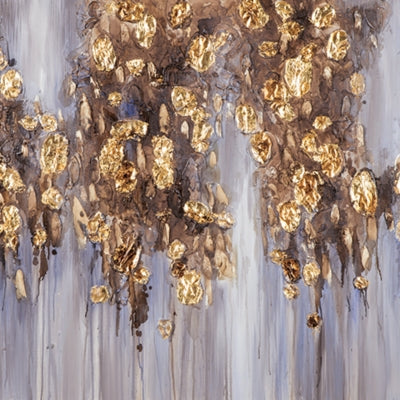 Details & OverviewWith the Donier wall art, you’ll find yourself in a room dripping with gold. Mastering gorgeous abstract expression, this canvas is covered in soft shades of blue. Gold leaf metallic embellishment adds dimension for a positively chic look you can’t beat.