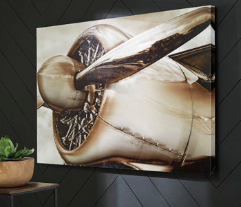 Details & OverviewWhether your look is vintage inspired or contemporary, this sepia-tone airplane wall art rises to the occasion. Gallery wrapped canvas enhances its hip, high-art appeal.