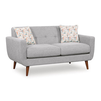 Detalles y descripción generalEl estilo clásico de mediados de siglo se encuentra con el estilo contemporáneo en el sofá Margola. Las patas decorativas acampanadas dan un ambiente retro, mientras que los brazos track esbeltos traen el look al presente. En un gris que combina con todo, hace pareja bien con neutros y toques de color por igual. Un chic cojín de respaldo con capitoné de botones completa el diseño encantadoramente cool.