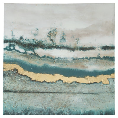 Details & OverviewPraveen wall art showcases a serene sea abstraction. Shades of turquoise and white flow with rhythmic depth, embellished with gold leaf. Textured element of the hand-painted visual makes each piece a unique beauty. Its contemporary appeal elevates your neutral room with style and color.