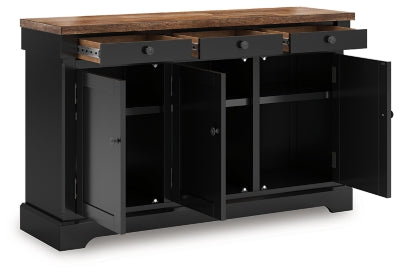 • Eleva el estilo rústico moderno con el aparador Wildenauer. Su elegante diseño se ve realzado por un acabado bicolor y una cubierta rústica de chapa de madera. Su robusta silueta le aporta un toque de solidez, ya sea que tu estilo sea vintage, campestre o ecléctico. Tres cajones y tres armarios con repisas ajustables satisfacen perfectamente tus necesidades para recibir invitados.